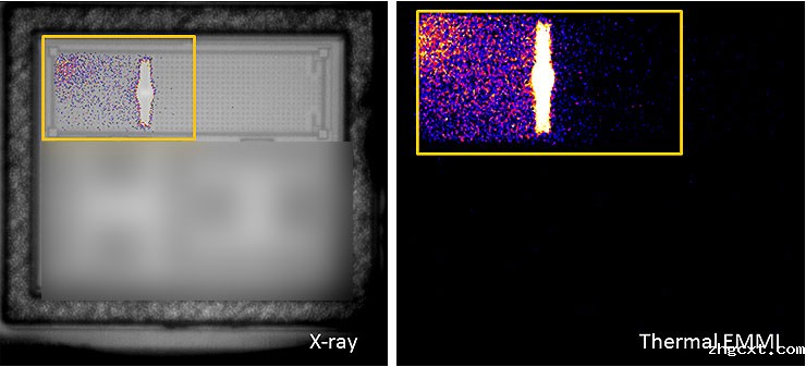 2、电气实验分析:采用热EMMI检测技术来精确定位锁定位置(见下图)。